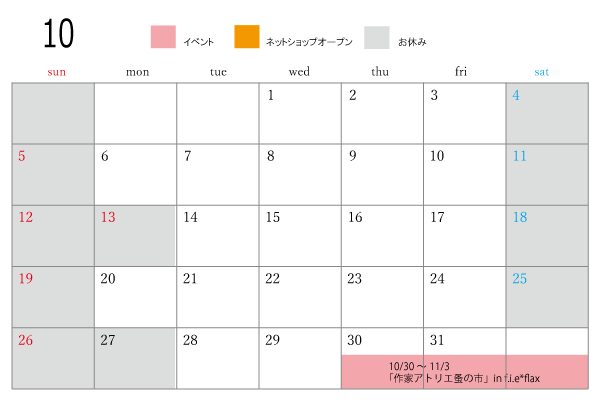 『作家アトリエ蚤の市』 10月30日(木)~11月3日(月・祝)11:00〜18:00 火曜定休石川県金沢市示野町南15-2conoHana*はハンドメイド資材や道具などを出品します。 f.i.e*flaxさんインスタを […]